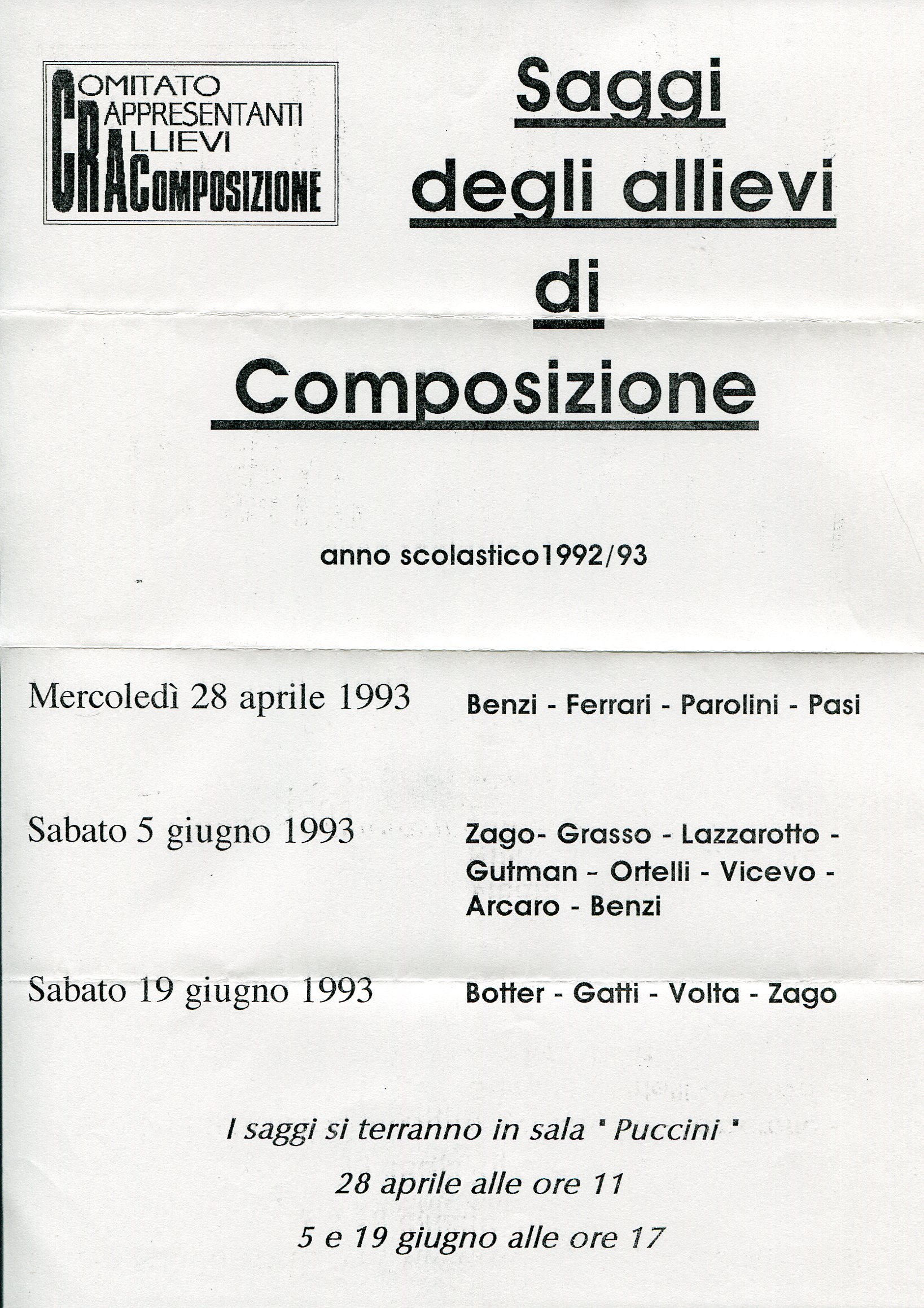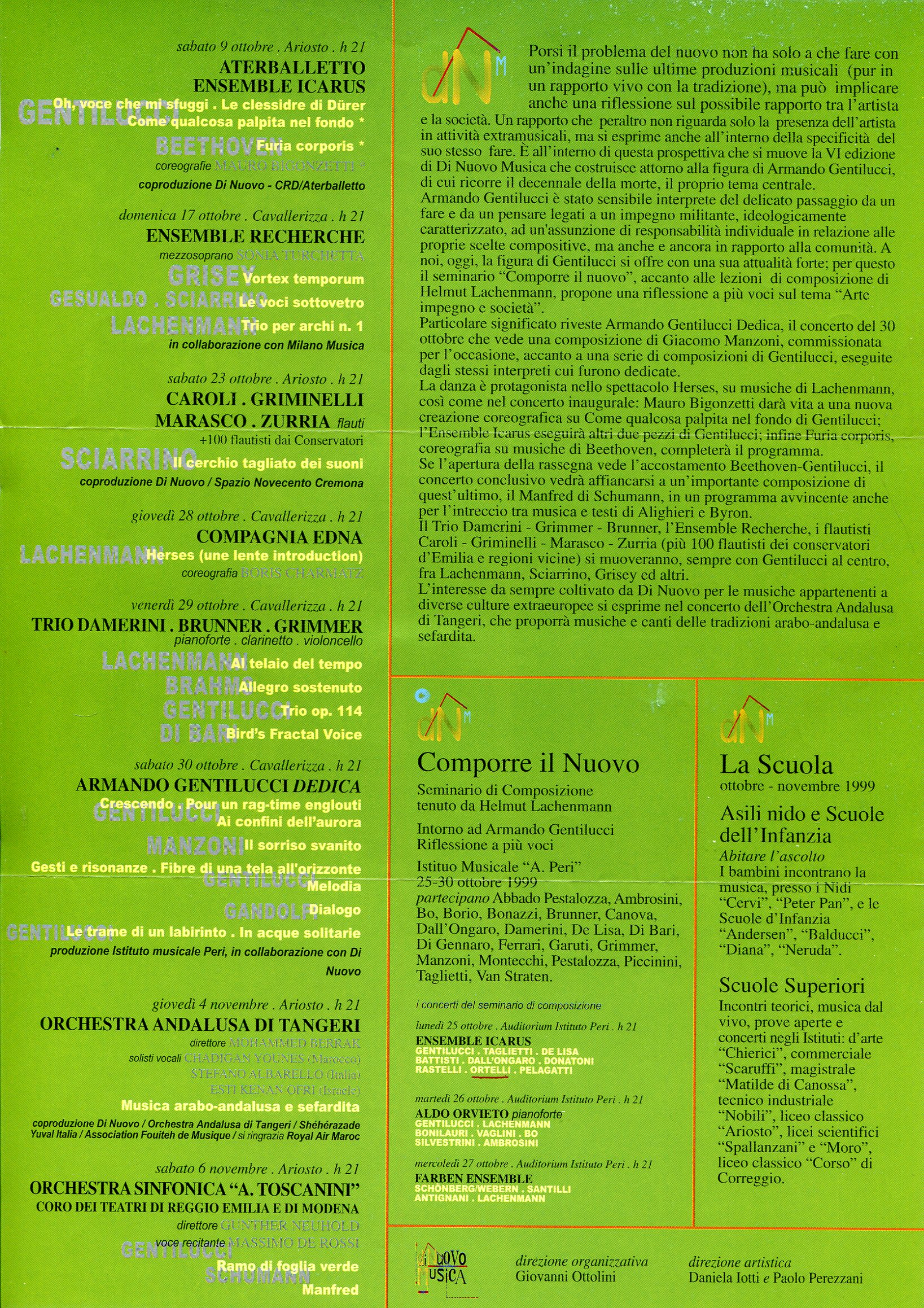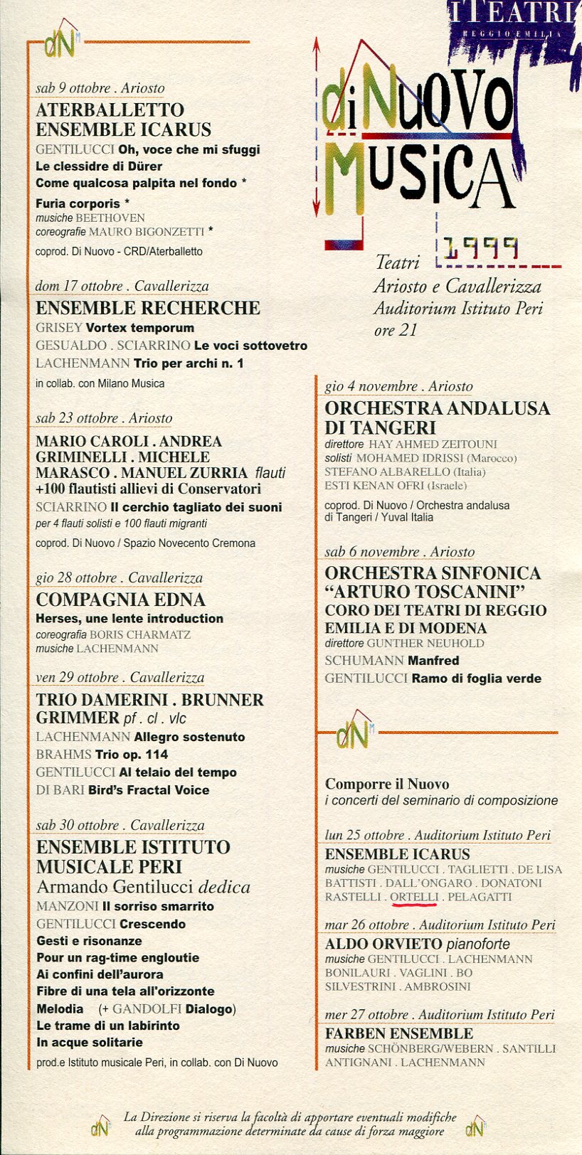 - “Epigrammi” per quattro voci (Pesaro, 1996: mai eseeguito)