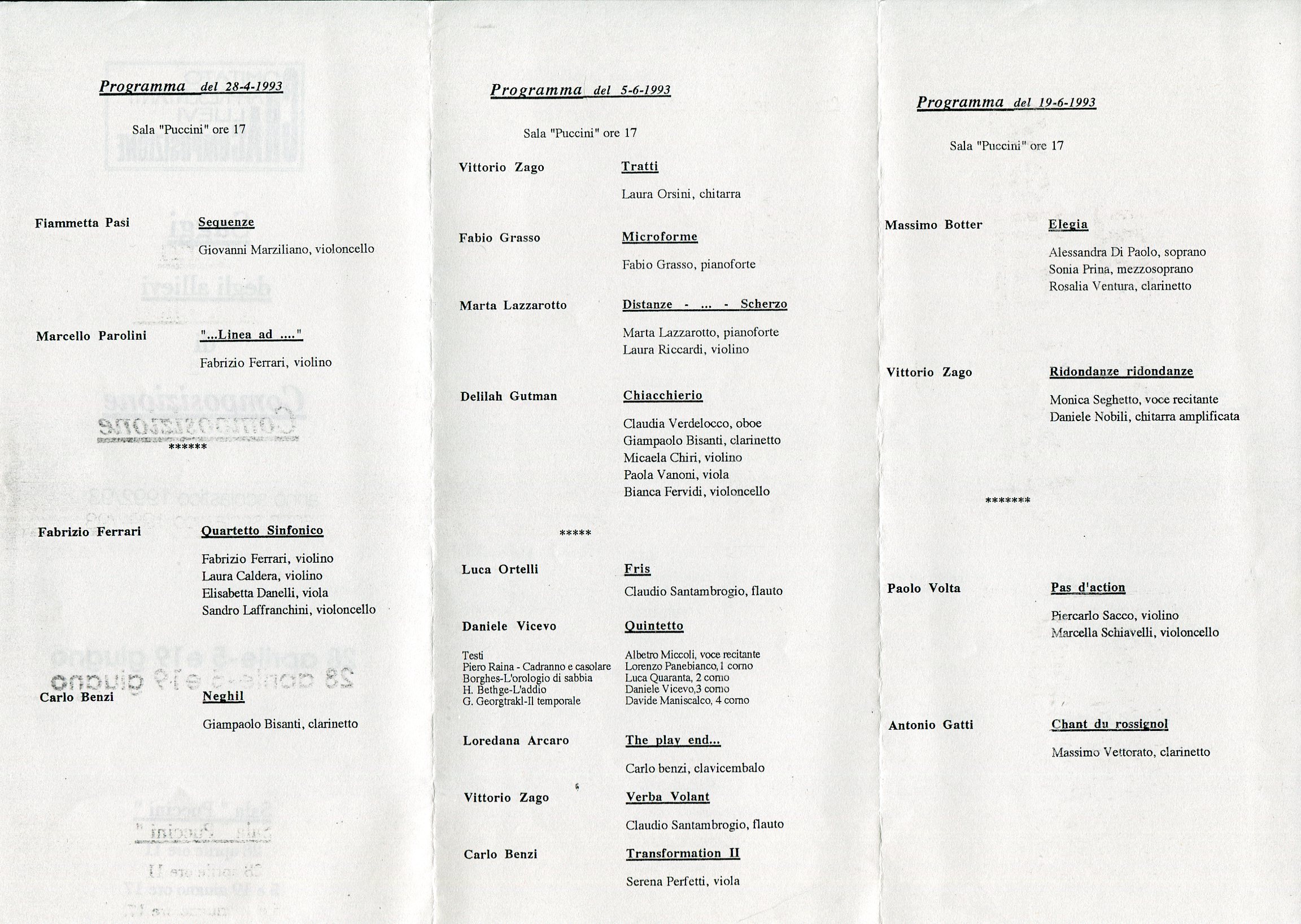- “Sul tema” per flauto e pianoforte (Milano, 1992)