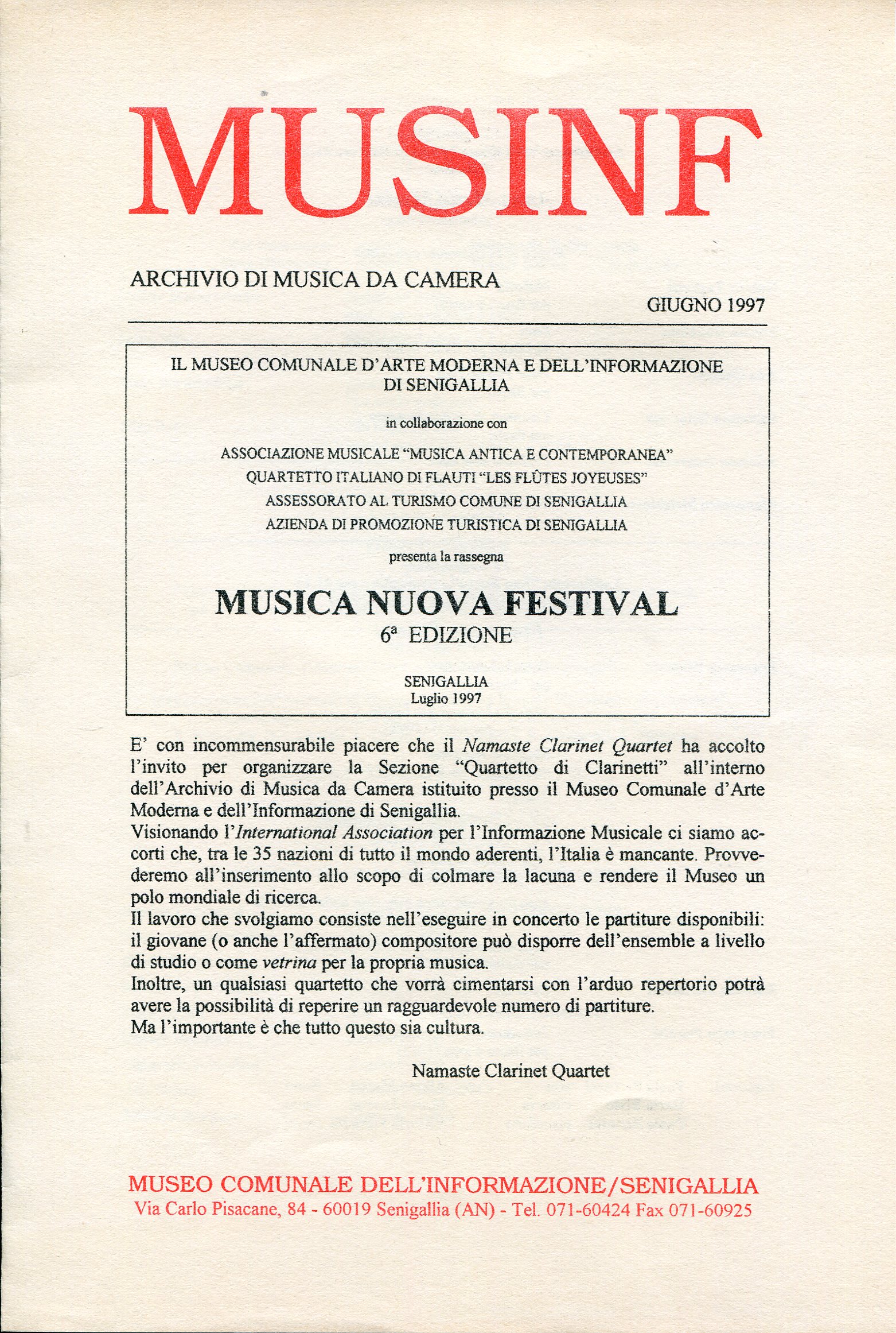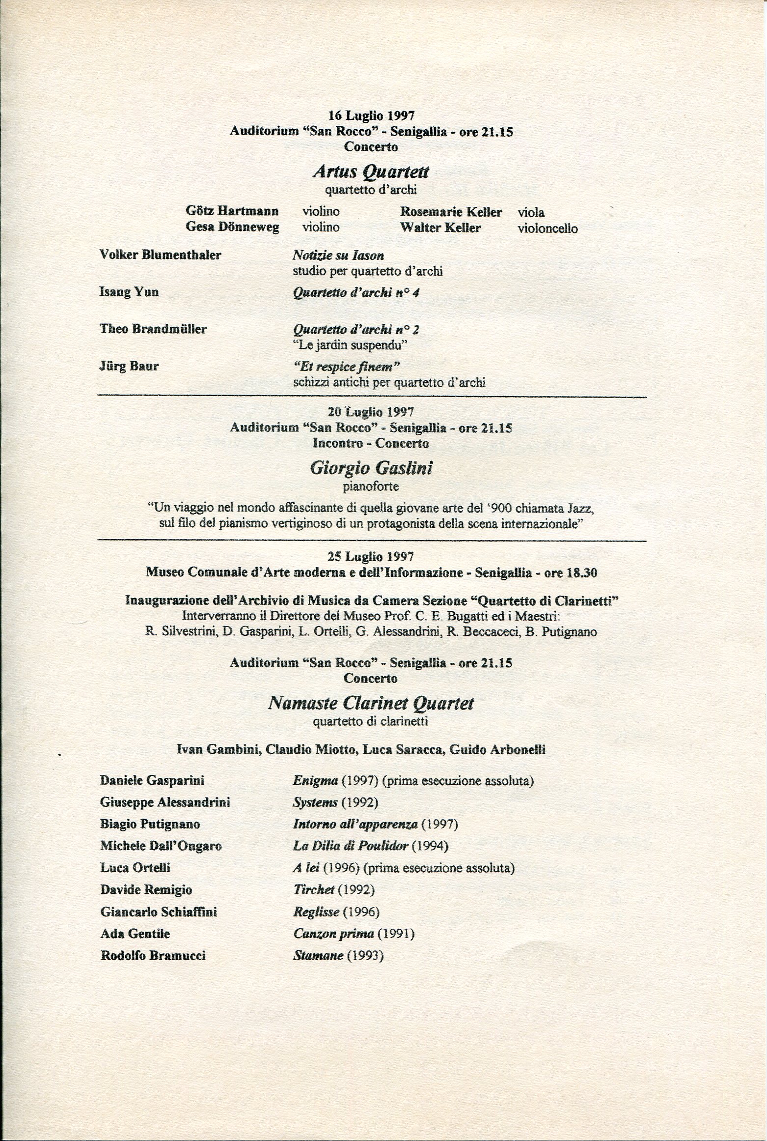 - “Frammento D” per clarinetto in La (Pesaro, 1998)