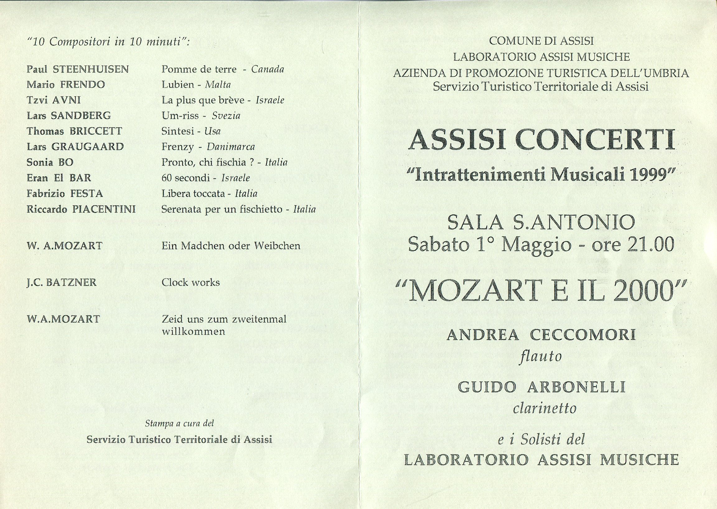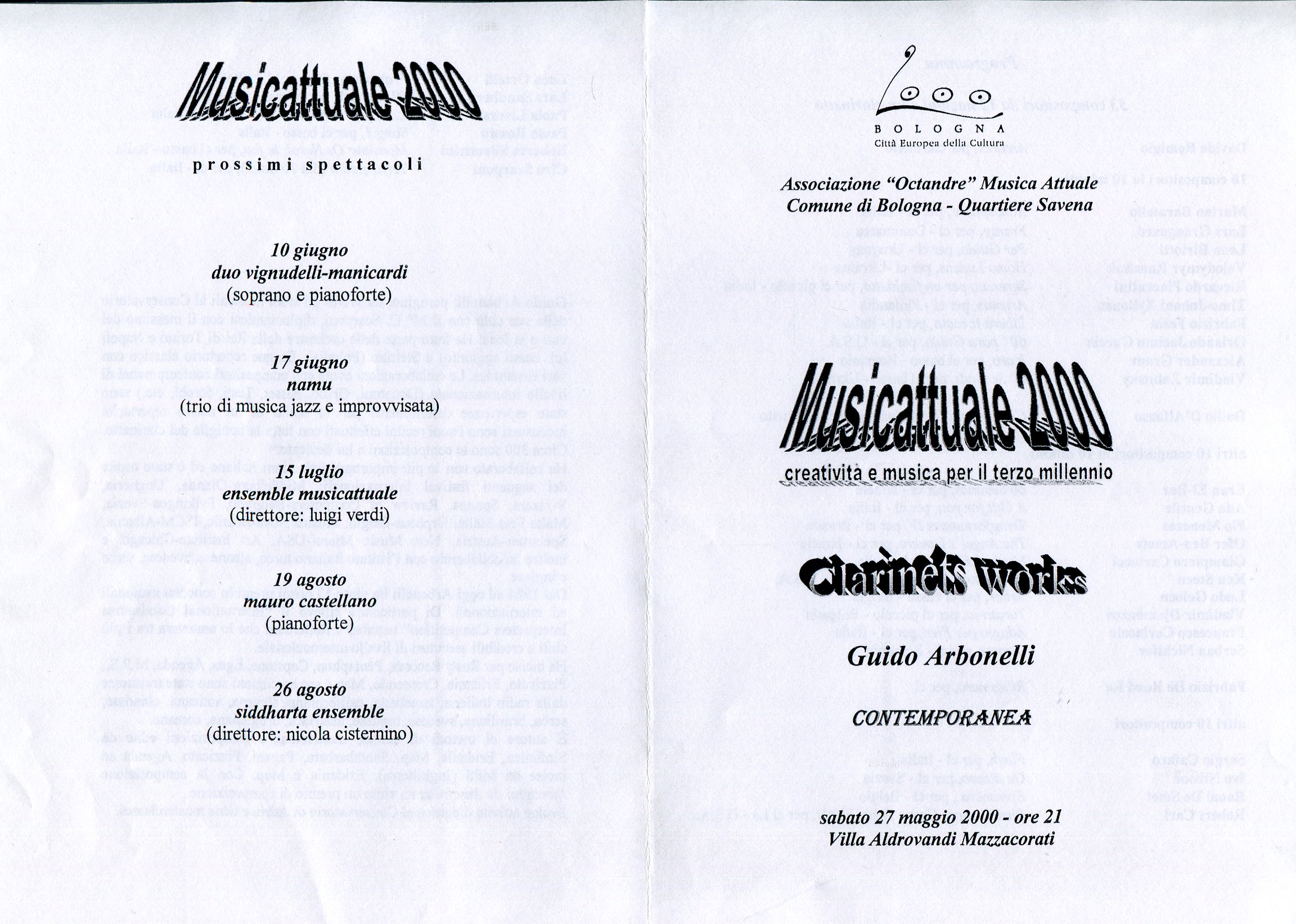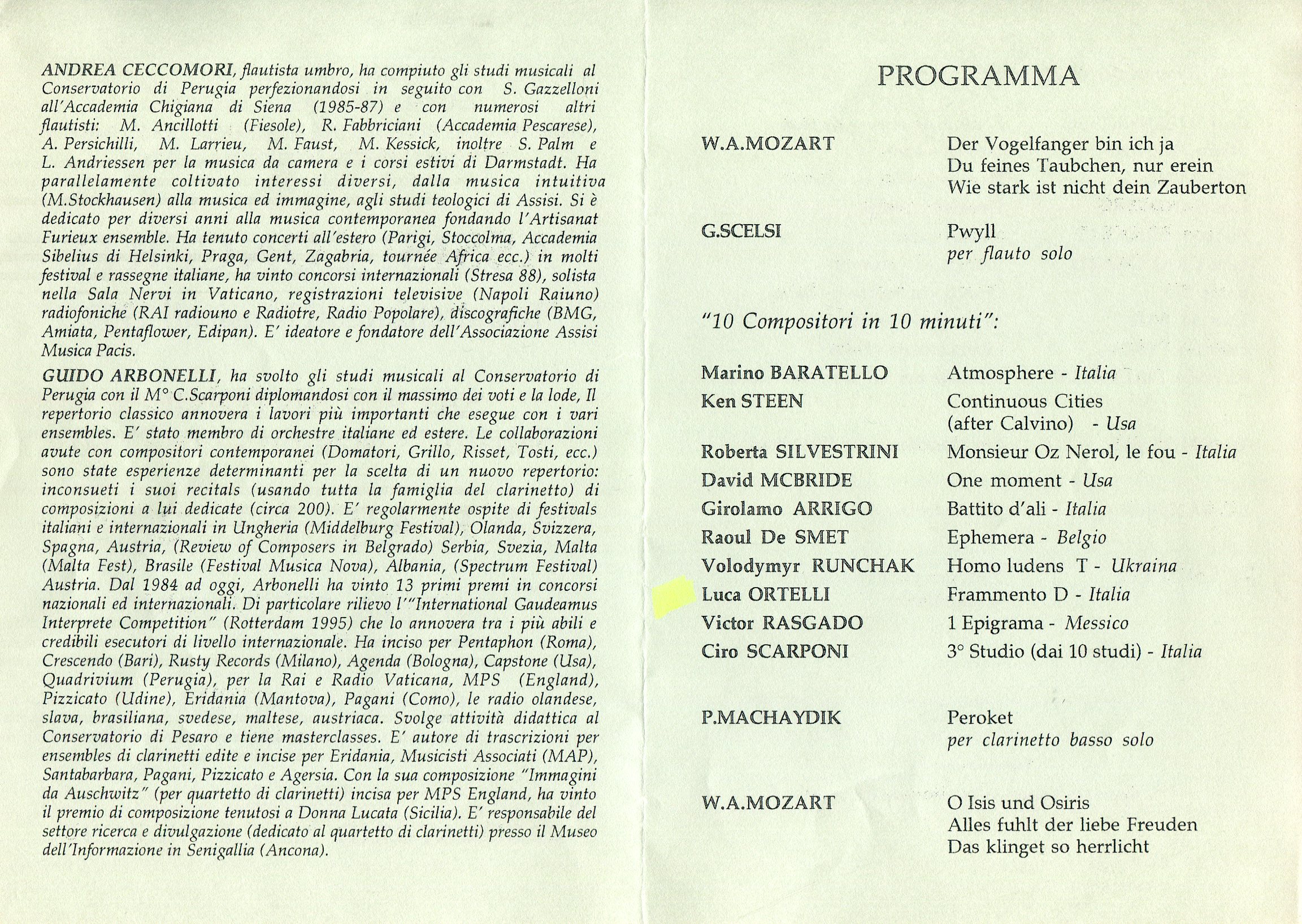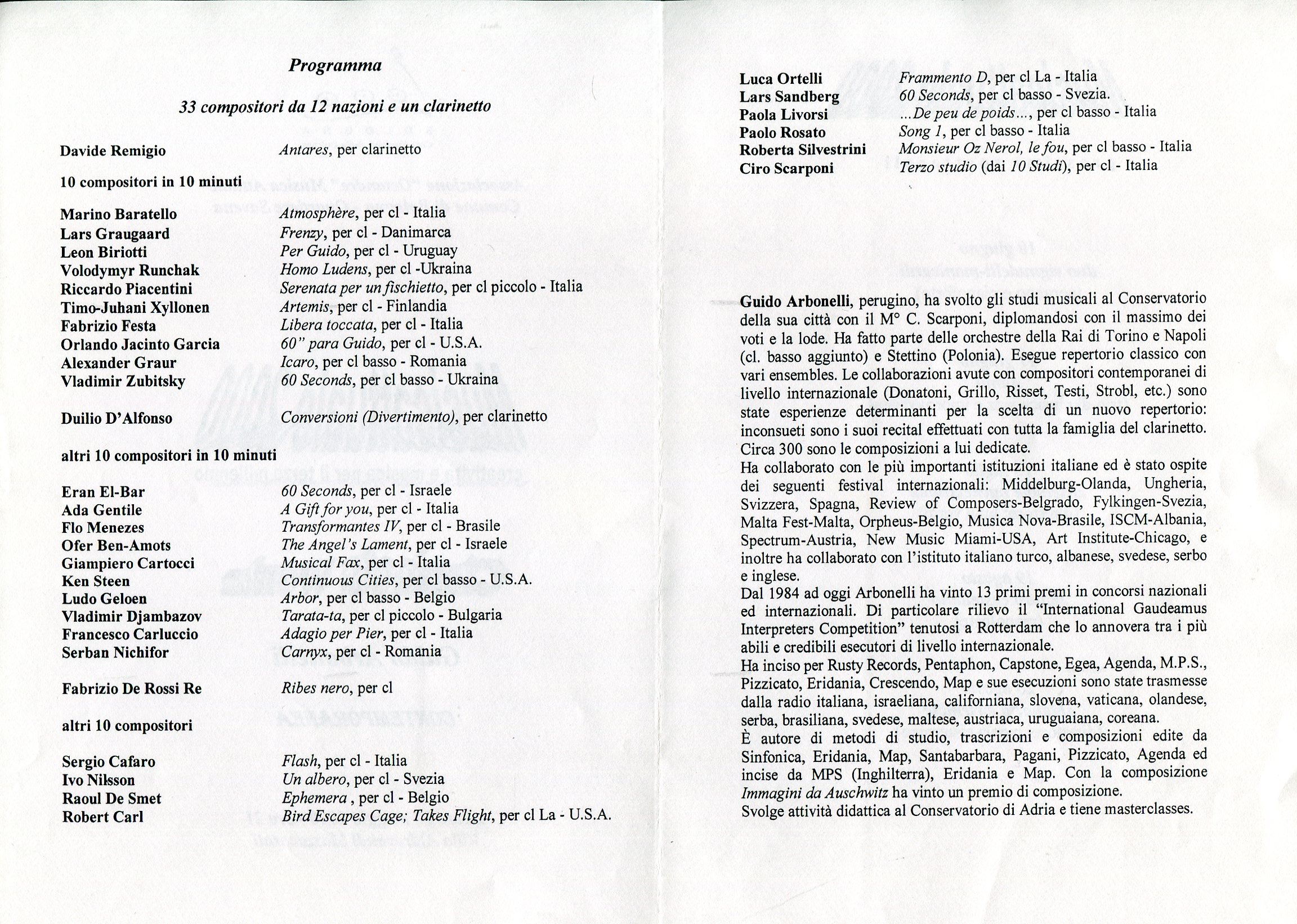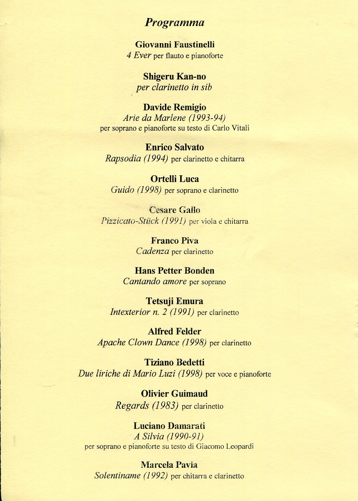 - “Guido” per voce soprano e clarinetto in La (Pesaro, 1998)
