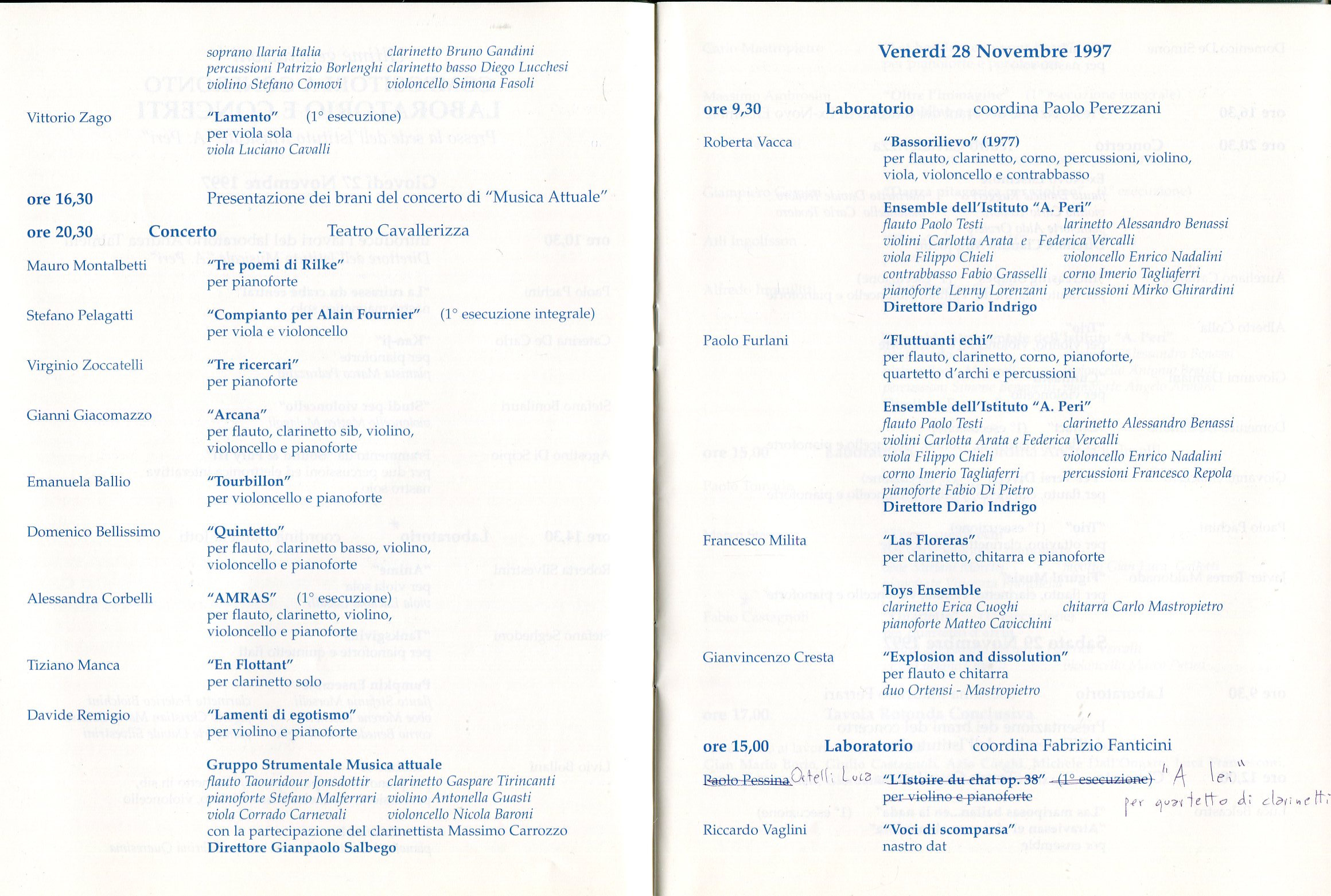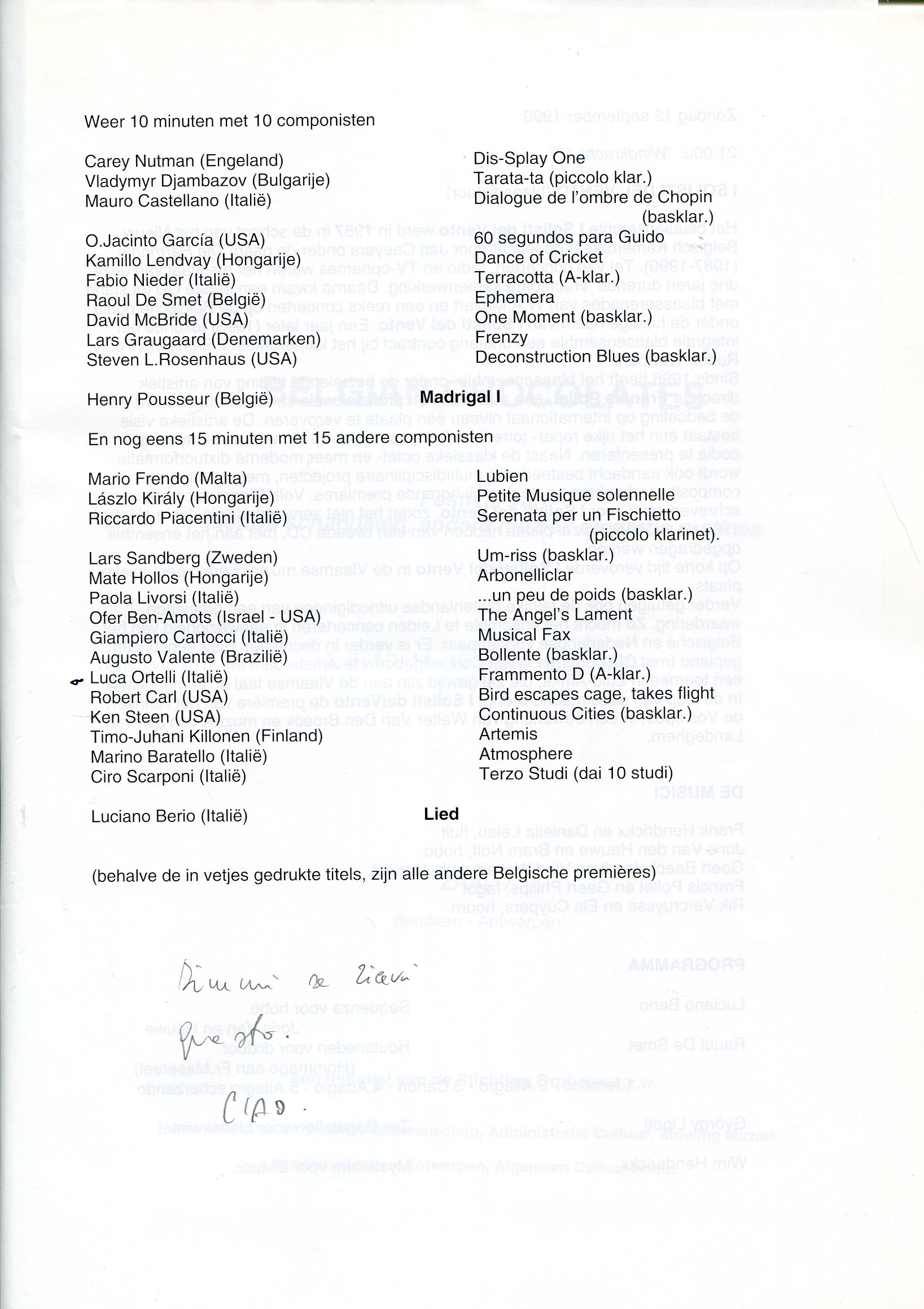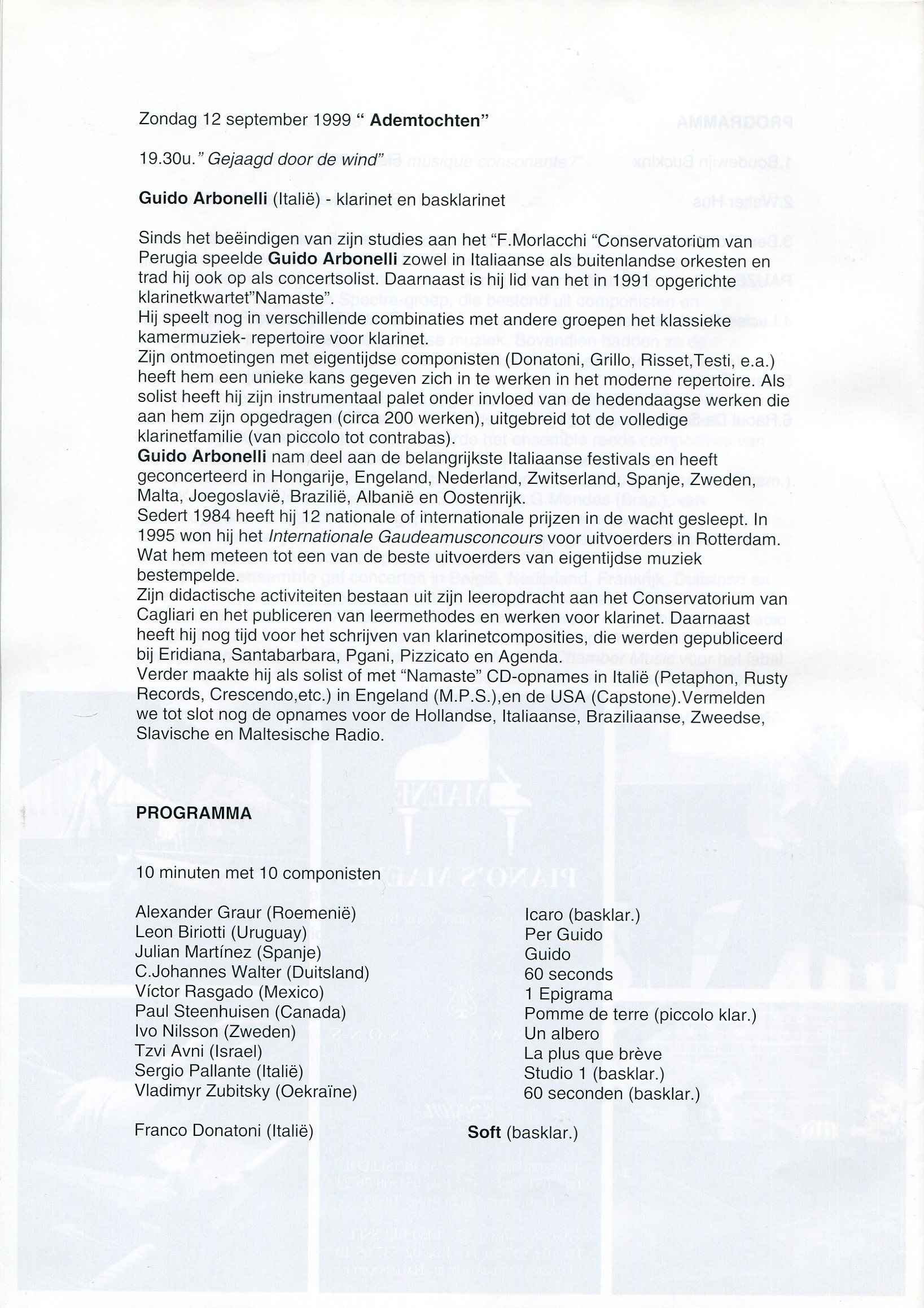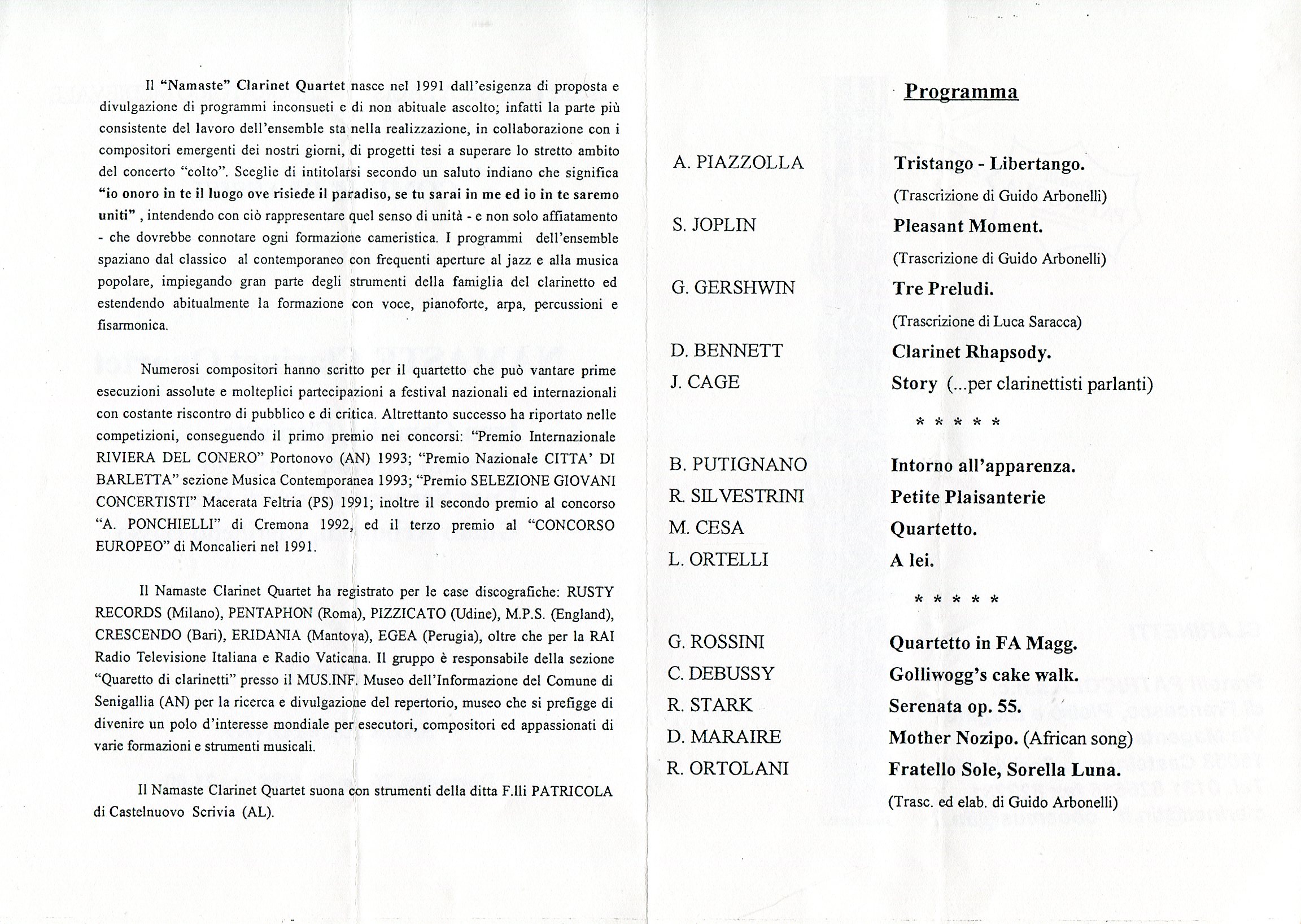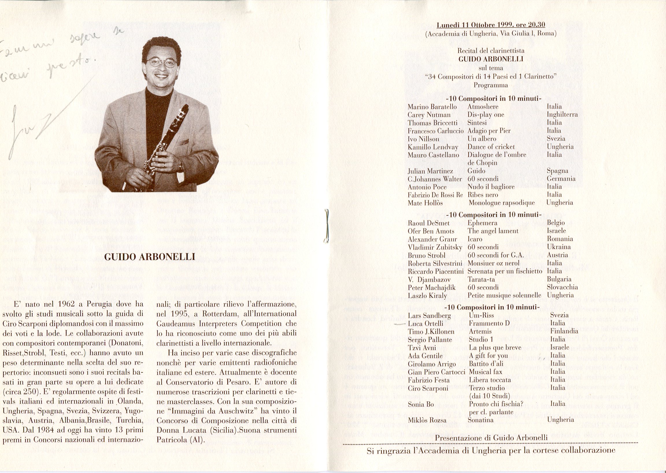 - “Guido” per voce soprano e clarinetto in La (Pesaro, 1998)