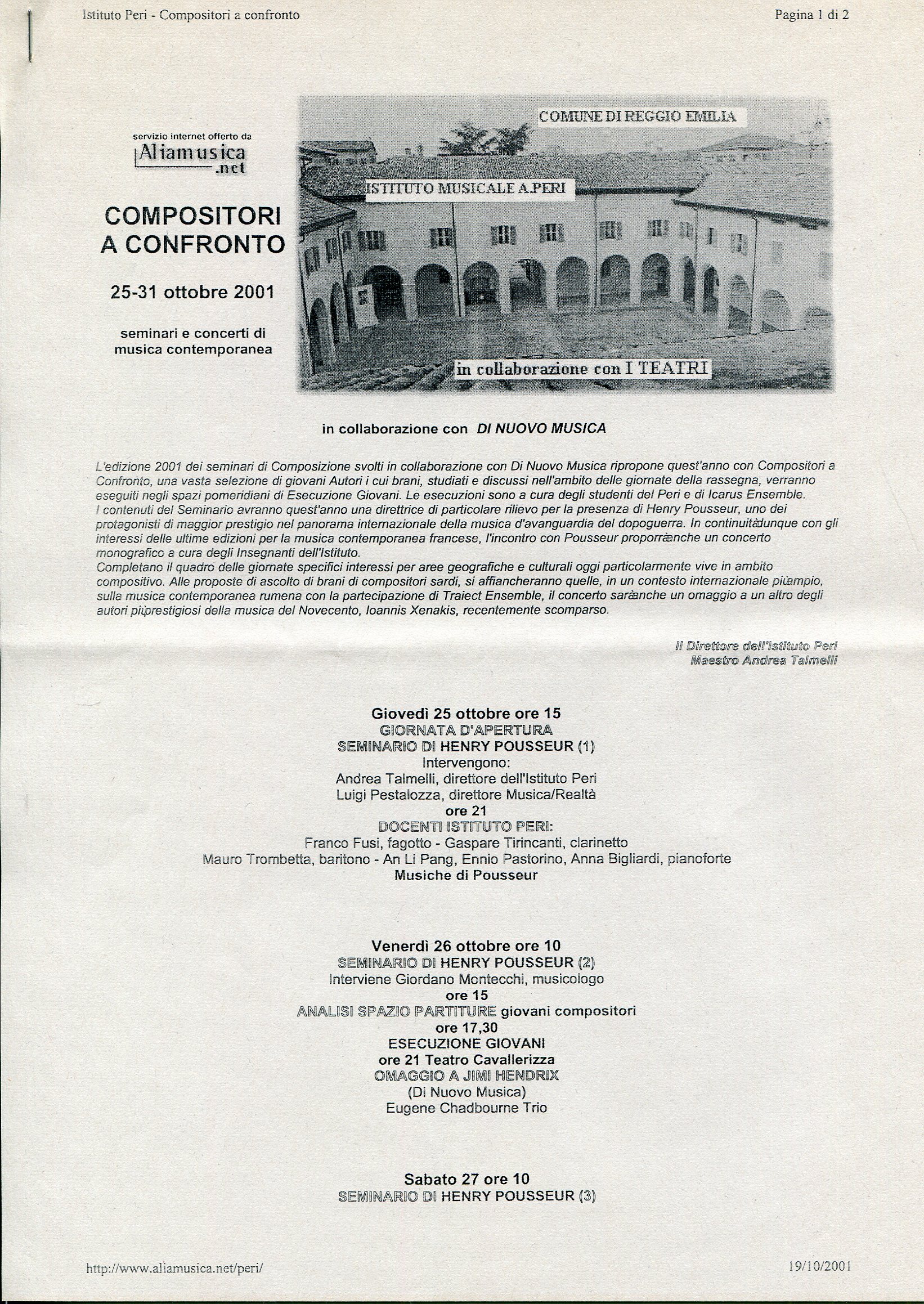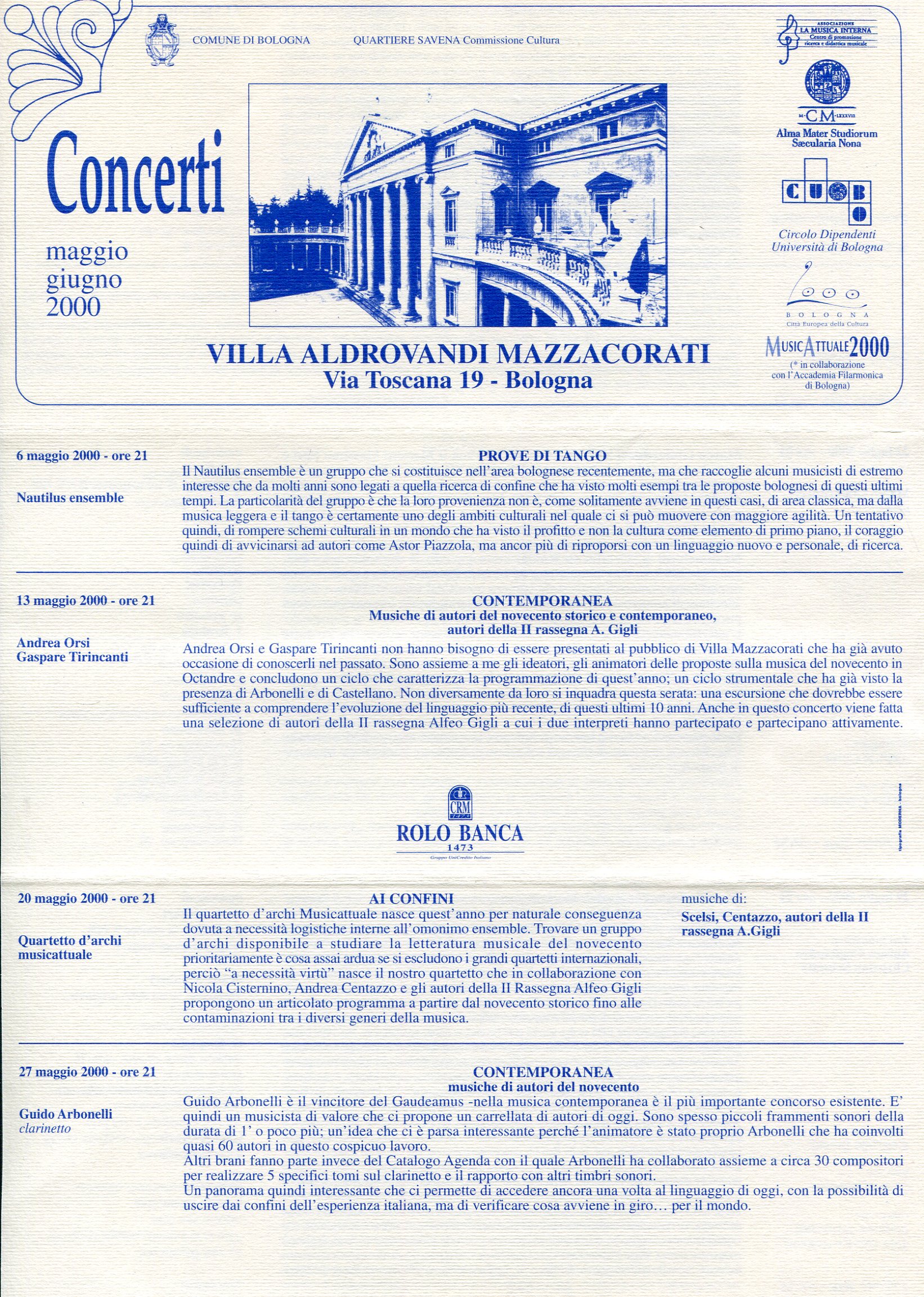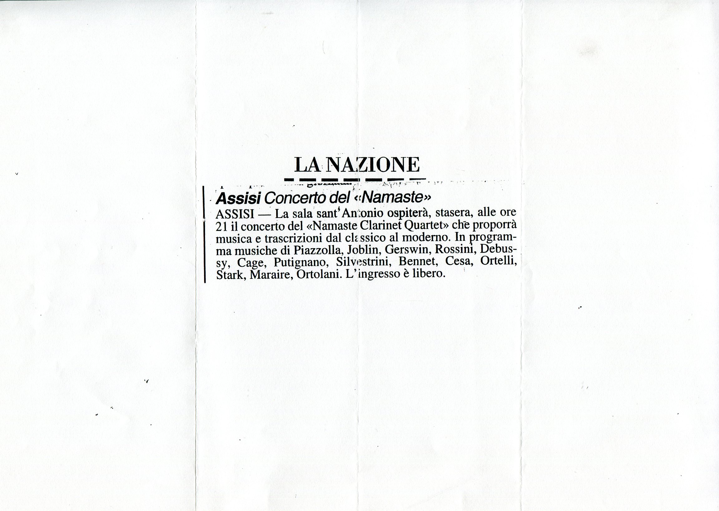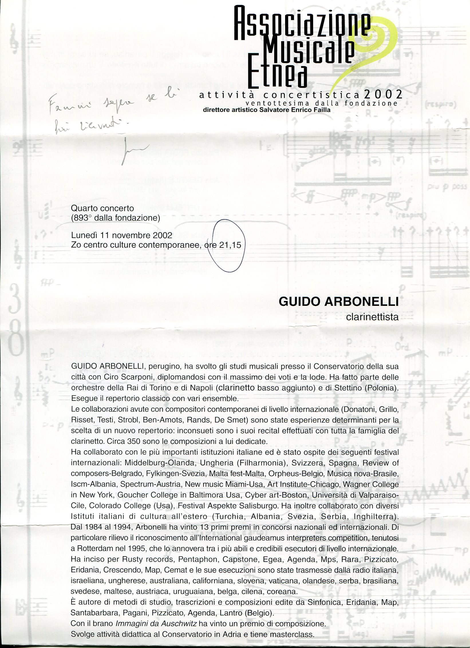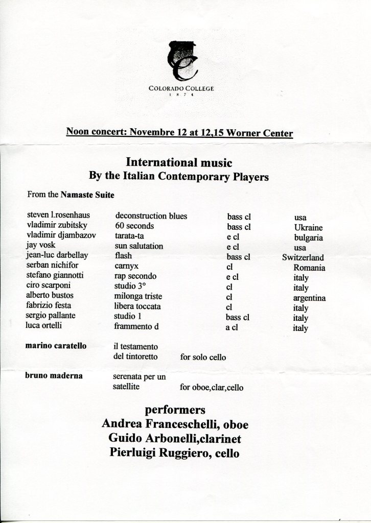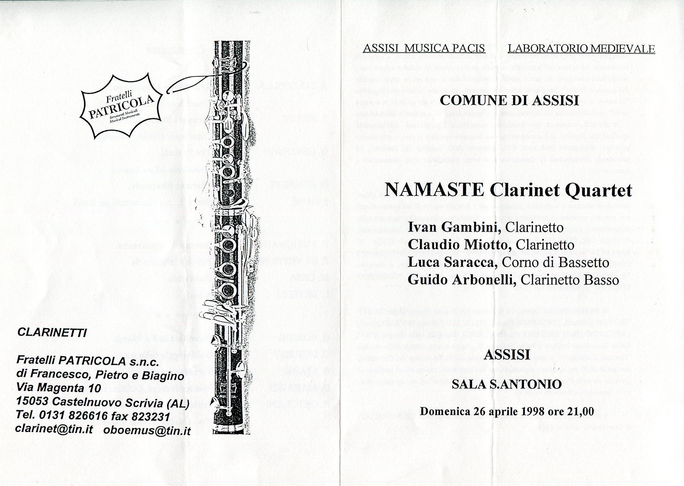 - “Guido” per voce soprano e clarinetto in La (Pesaro, 1998)
